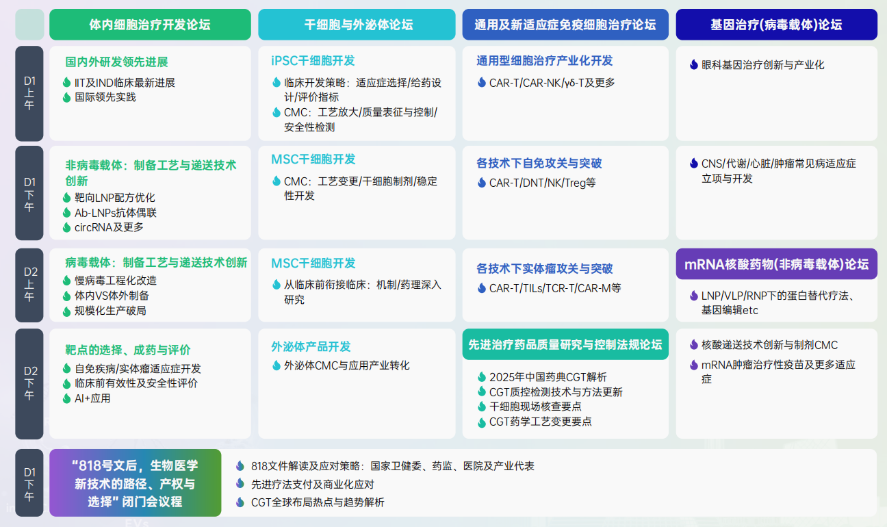 2、聚焦于TILs、TCR-T、CAR-M、Treg等技术在实体瘤及自身免疫疾病治疗中的攻关与突破,讨论通用型细胞治疗的后期开发策略,包括CAR-T、CAR-NK、γδ-T细胞等在新适应症中的应用潜力