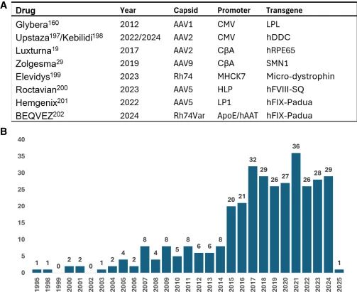 Suarez-Amaran L, Song L, Tretiakova AP, Mikhail SA, Samulski RJ.AAV vector development, back to the future. Mol Ther.2025May7;33(5):1903-1936. doi:10.1016/j.ymthe.2025.03.064. Epub2025Apr3. PMID:40186350; PMCID: PMC12126818.